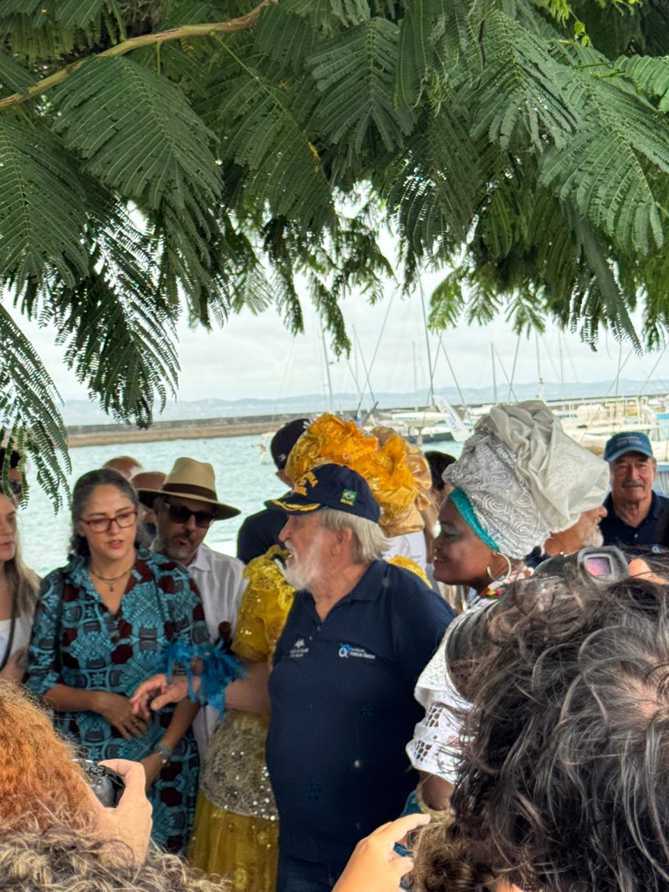 A recepção contou com área exclusiva organizada para convidados, além de estrutura preparada para acompanhar o momento da atracação do veleiro. A iniciativa foi conduzida pela Fundação Aleixo Belov, que coordenou a cerimônia de boas-vindas em celebração à conclusão da Travessia da Passagem Nordeste.