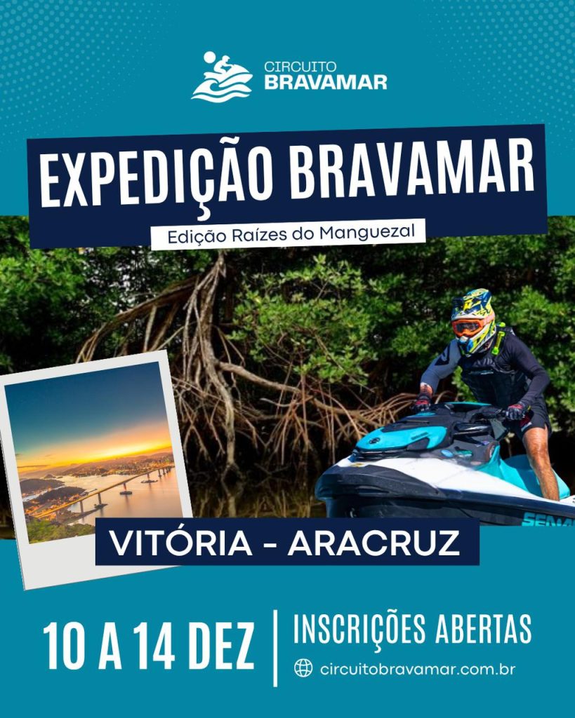 O Espírito Santo receberá, entre os dias 10 e 14 de dezembro, a primeira expedição e competição de jet ski do estado, a Expedição Bravamar – Edição Raízes do Manguezal. O percurso terá início em Vitória e seguirá até Aracruz, totalizando mais de 180 quilômetros de navegação pela costa capixaba.
