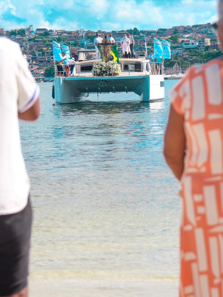 A missa foi celebrada sobre as águas da Baía de Todos-os-Santos, reforçando a tradição que conecta a devoção ao Senhor do Bonfim à navegação. O cenário marítimo, com barcos ancorados e tripulações acompanhando a cerimônia, transformou a Baía em espaço litúrgico e simbólico.