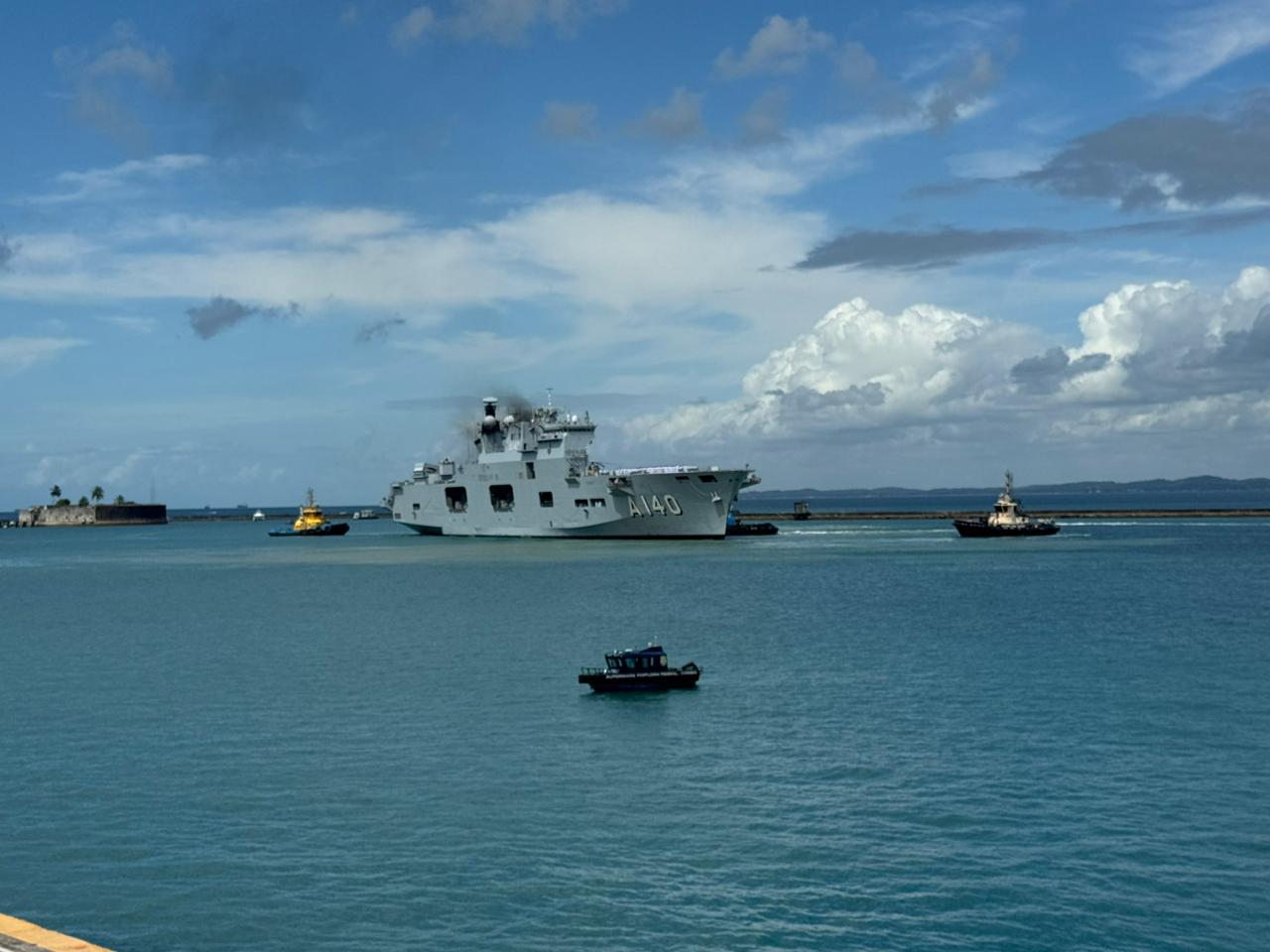 O maior navio de guerra da América Latina já está em Salvador. O Navio-Aeródromo Multipropósito (NAM) Atlântico chegou à capital baiana nesta sexta-feira (23). Ele estará aberto para visitação gratuita neste domingo (25), no Porto de Salvador. Além dele, o público também poderá conhecer o Navio Doca Multipropósito (NDM) Bahia, no Terminal Marítimo de Salvador (Contermas).